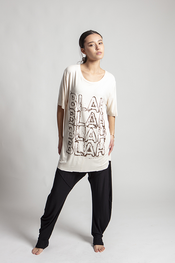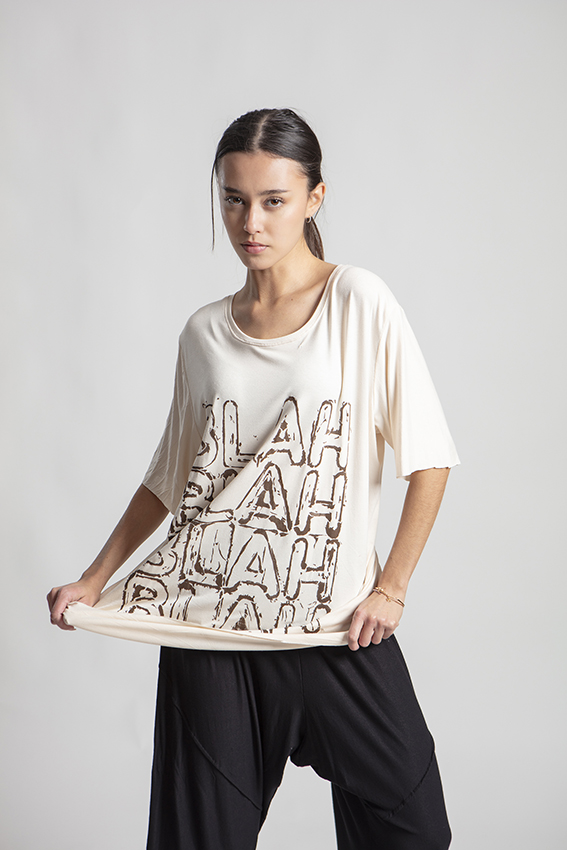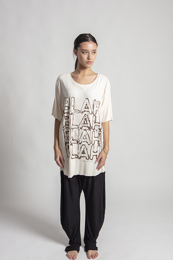 Introducing the “Blah Blah” Jersey Tee — Ivory by GRAFFI — handmade, hand-painted and designed to elevate everyday comfort.