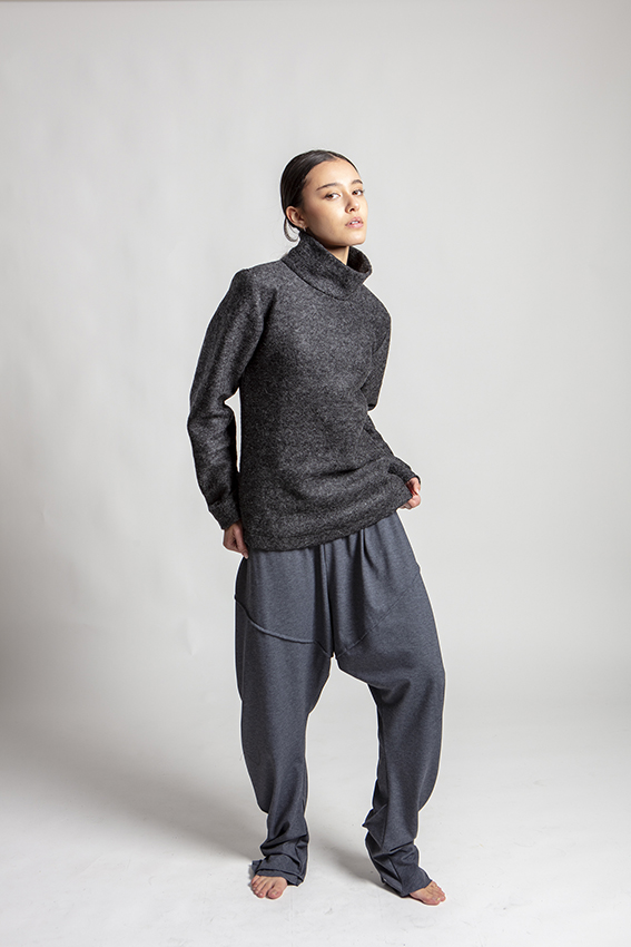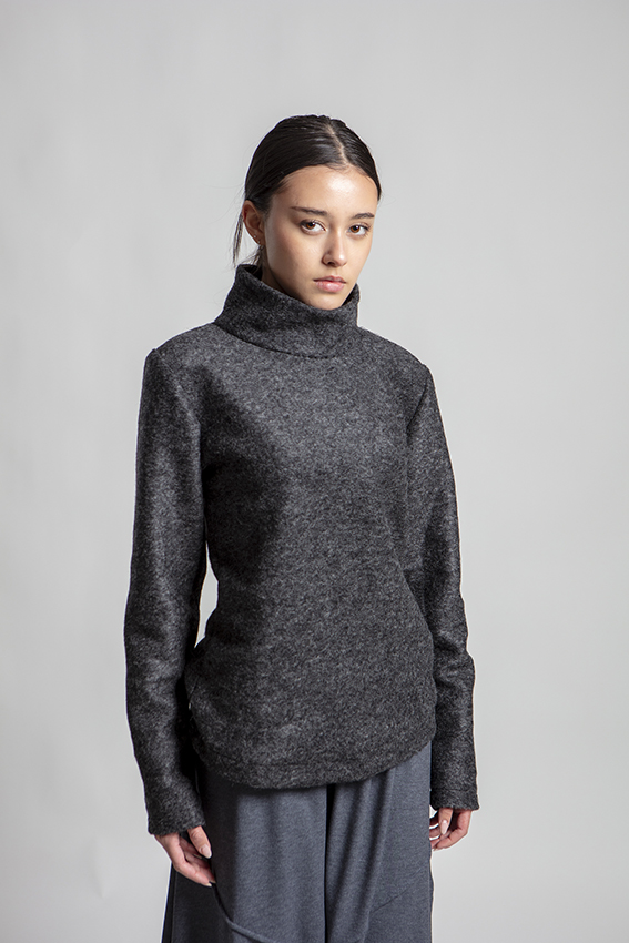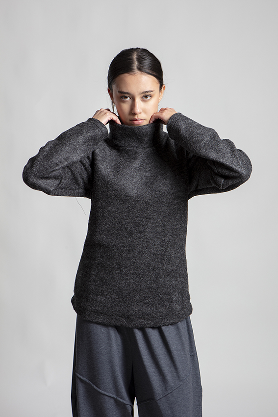 Minimal turtleneck jumper in soft knit — modern staple with refined texture.